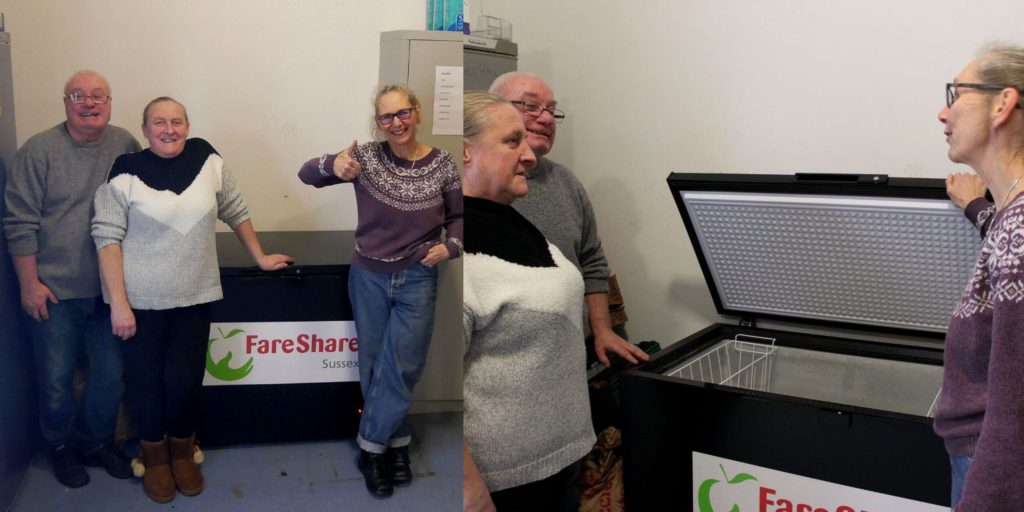 The addition of a new 282 litre chest freezer facilitates the ability to accept larger items that would otherwise take up a lot of space in their other freezer. They receive food from FareShare Sussex & Surrey weekly but also depend on other suppliers to keep up with demands for food, sometimes collecting items on-the-day which they struggle to get rid of. Cllr Kate adds: